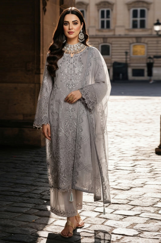 Embroidered pure bamber chiffon front embellished with handmade Plain pure bamber chiffon back Embroidered...