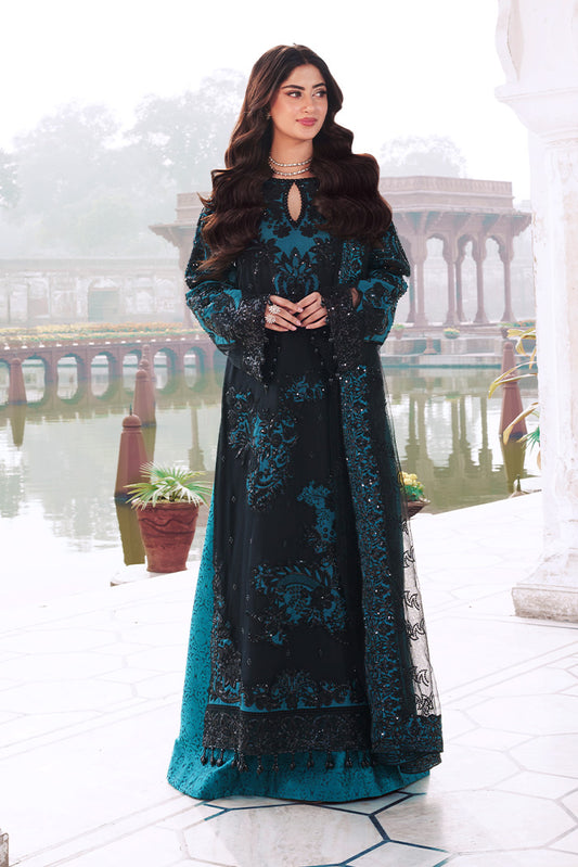 Embroidered khaddi net with handmade embellishments for front yoke. Embroidered khaddi net for back yoke....