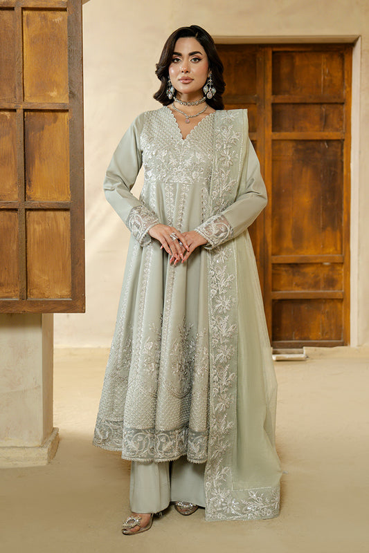 Embroidered organza shirt embellished with handmade. Embroidered net dupatta. Embroidered raw silk trouser. WASHING INSTRUCTIONS:Dry...
