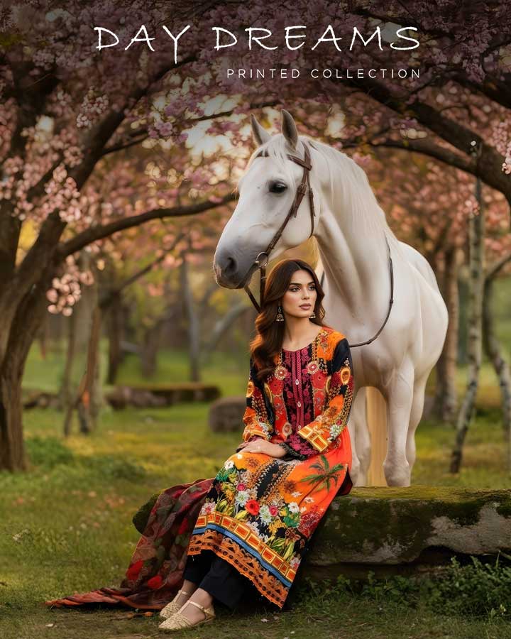 Description: Printed cotton satin long shirt adorned with intricate embroidery on the neckline, sleeves, and...