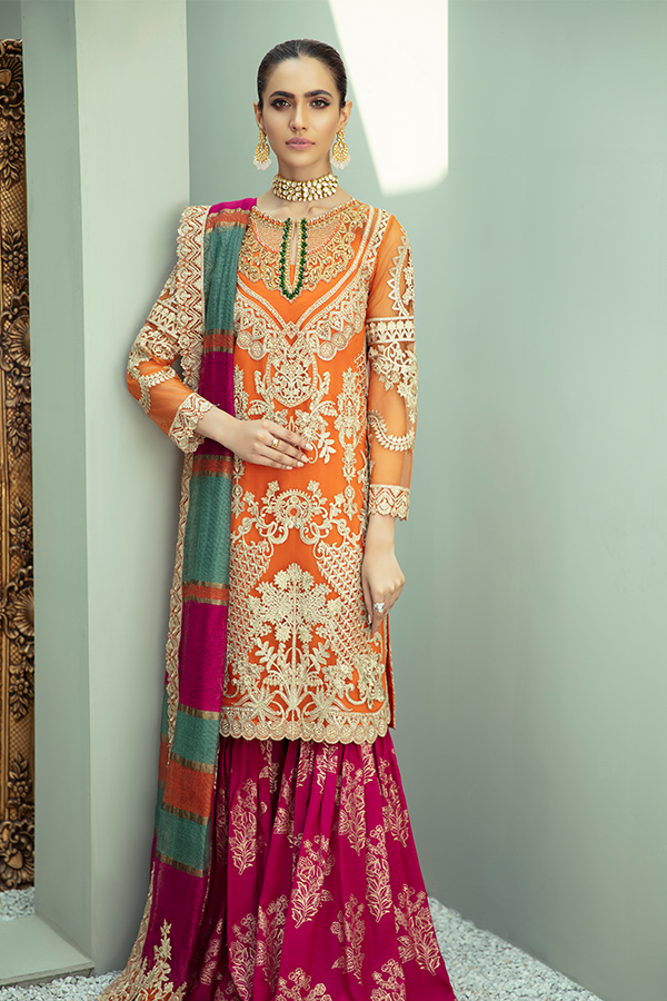 . For urgent delivery, contact our support team before completing your purchase. . Stitched outfits include trousers made from the provided unstitched fabric for a cohesive look.